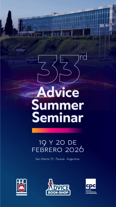 Es un placer invitarlos a participar de las jornadas del 33° Advice Summer Seminar, que se desarrollarán los días 19 y 20 de febrero de 2026 en el Centro Provincial de Convenciones de la Provincia de Entre Ríos, en la ciudad de Paraná.