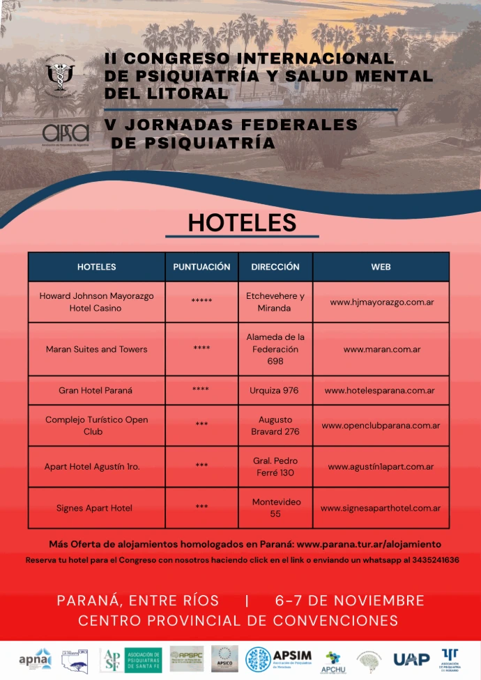 Podrás descubrir los encantos de la ciudad antes del evento principal, alojarte tranquilo y explorar sus sitios emblemáticos y disfrutando de su gastronomía local esperando el inicio del Congreso. O bien, solicitar un paquete POST CONGRESO que ofrecen la oportunidad de relajarte y disfrutar aún más de Paraná después del evento.
